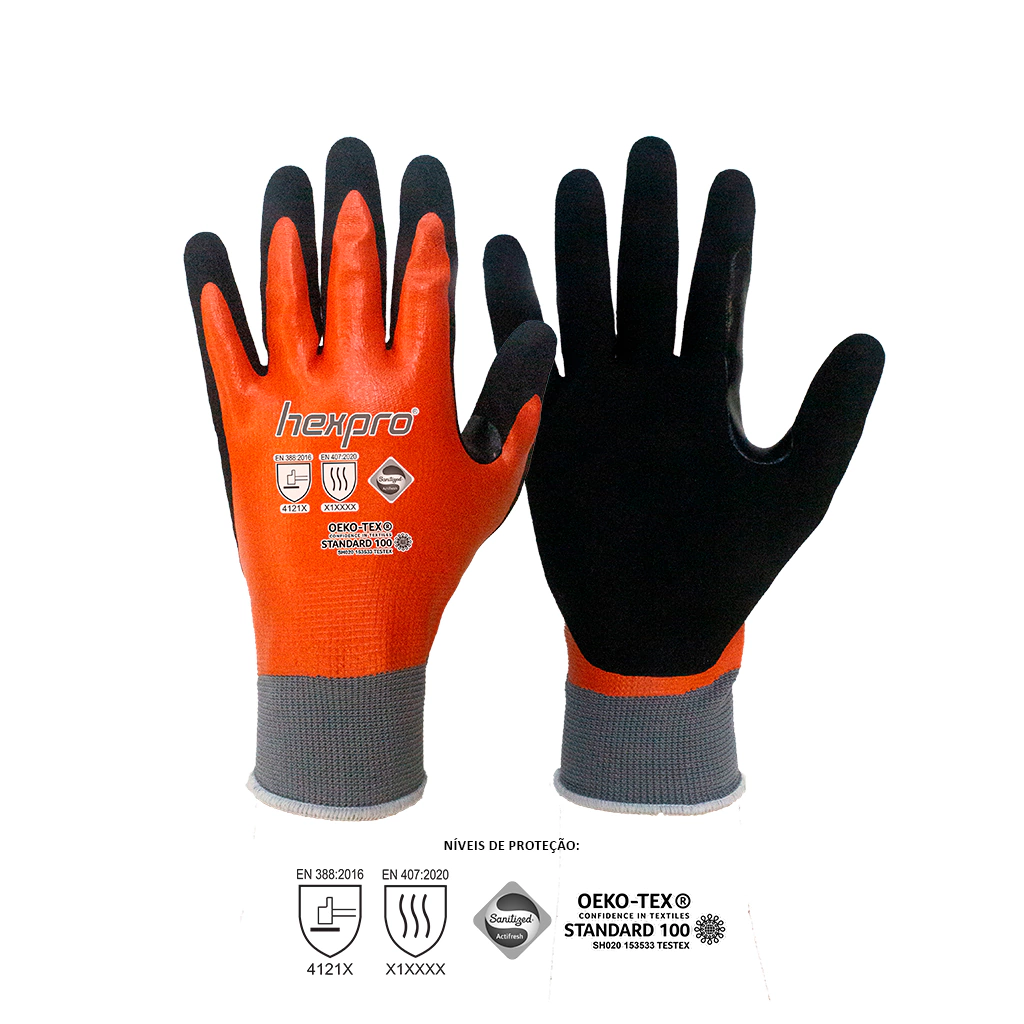 O revestimento em borracha nitrílica cobre toda a palma e dorso da mão, com sobrebanho tipo areia que melhora a aderência. O reforço entre o polegar e o indicador aumenta a proteção nas áreas mais exigidas. Possui punho firme e resistente, com acabamento de alta qualidade. Sua composição foi pensada para suportar os desafios do dia a dia com conforto. Um EPI completo para uso profissional e doméstico.